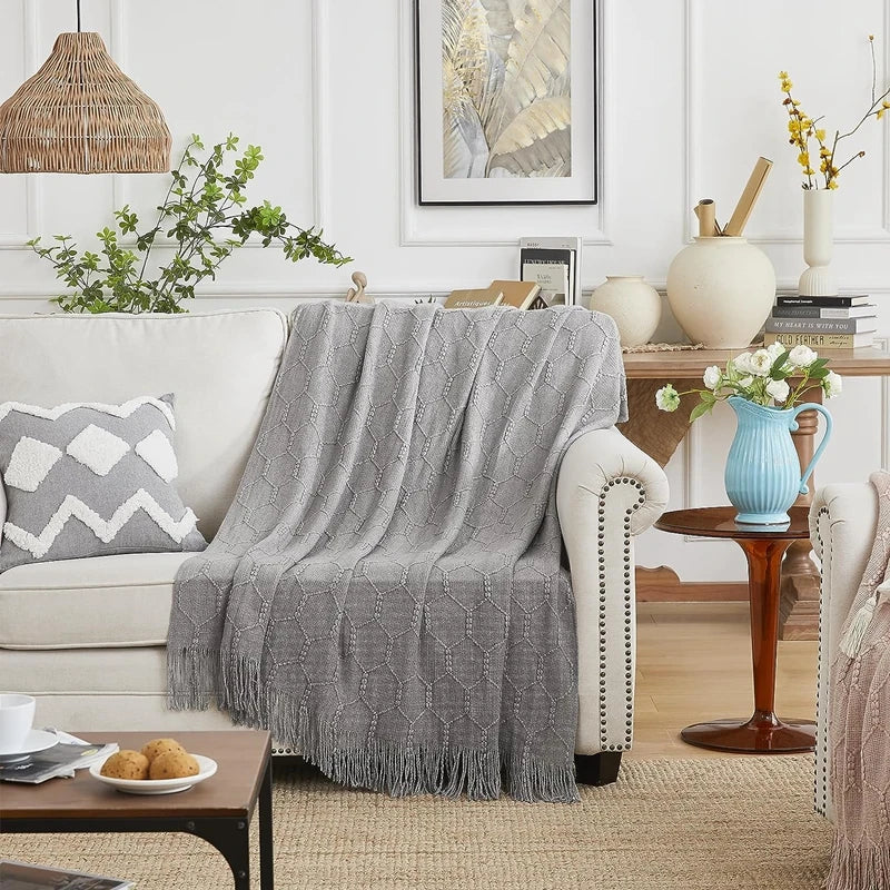 Wool-like knitted blanket is the perfect accent piece to your room: as a decorative throw for couch, sofa or bed.