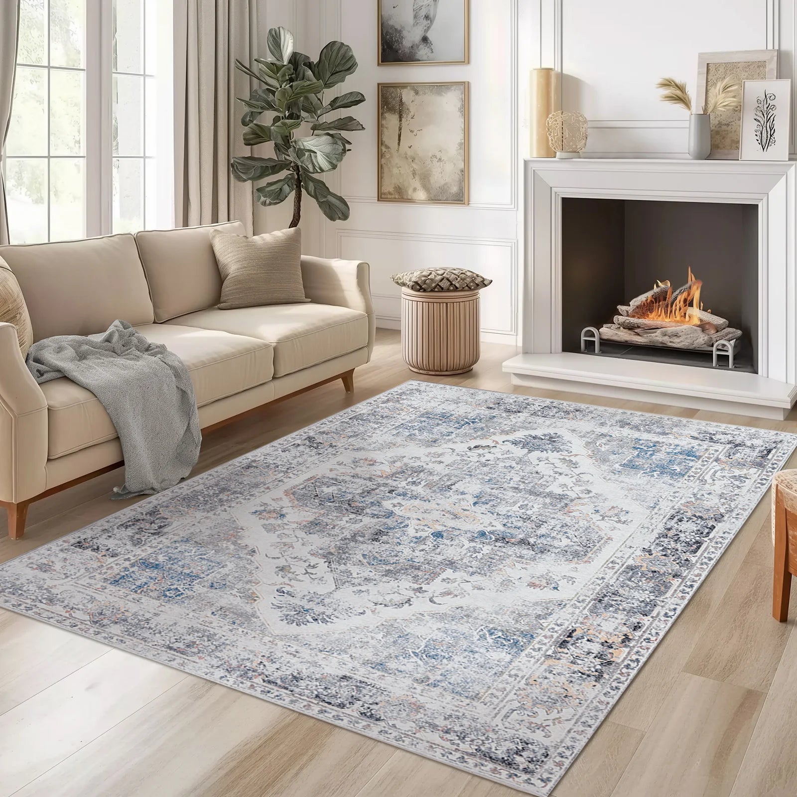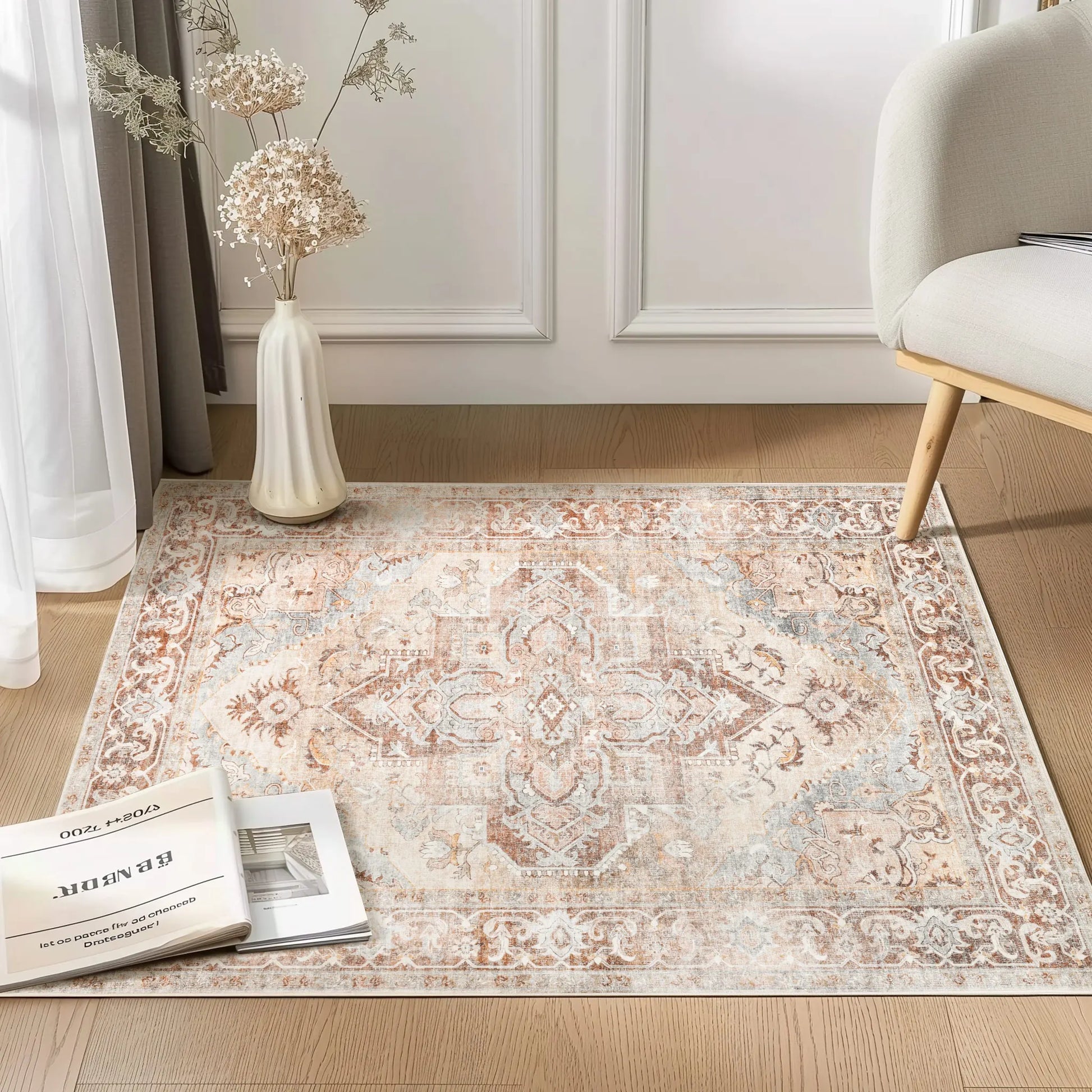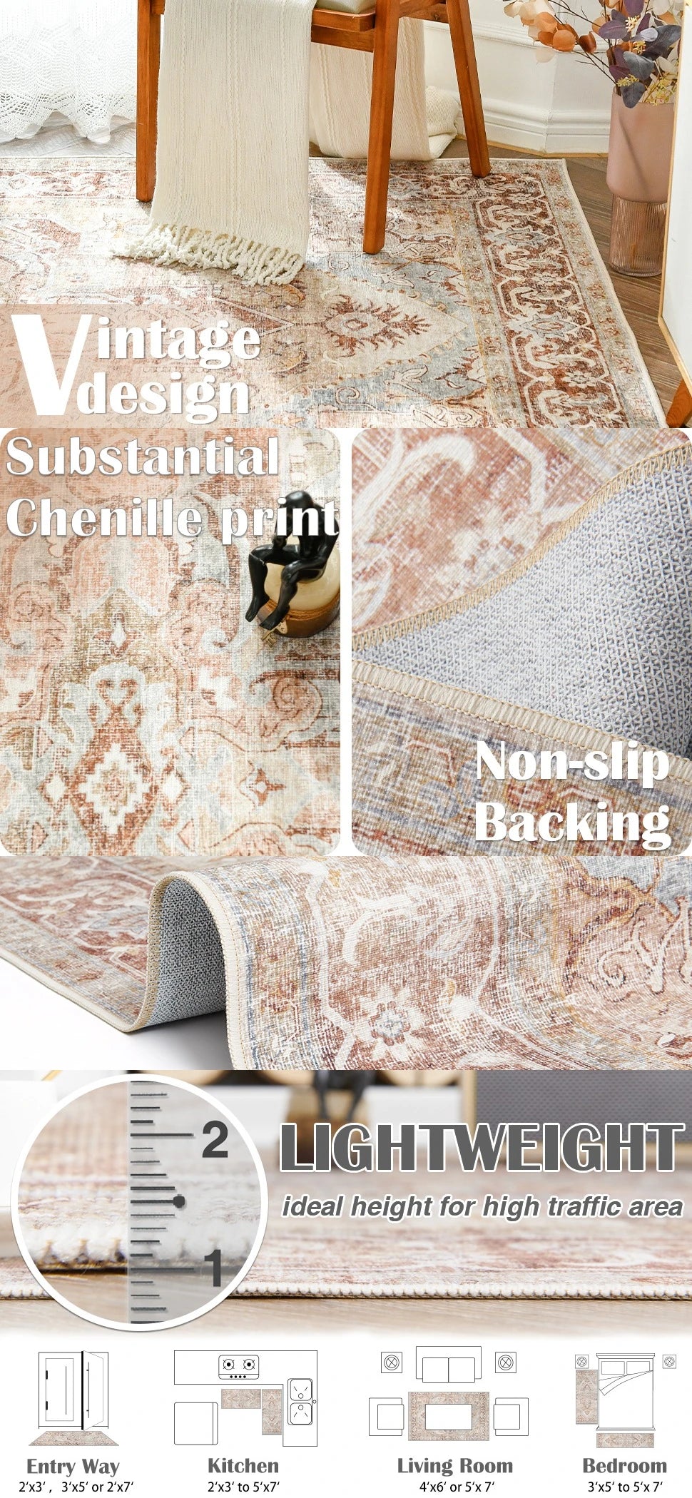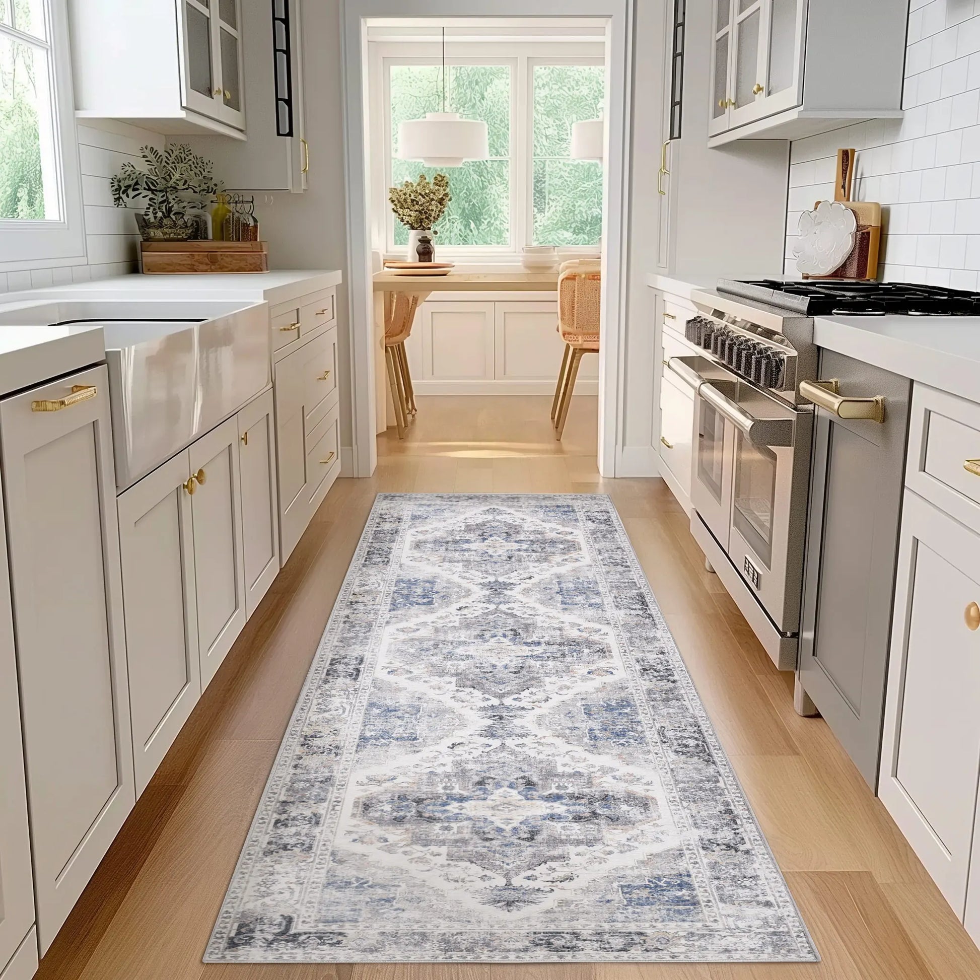 This RUGKING Traditional Area Rug provides a soft and luxurious feel. Designed with non-slip backing, it's perfect for high-traffic areas like kitchens, living rooms, bedrooms, hallways, and dining rooms. The foldable feature makes it easy to store and clean, making it a functional addition to any space.